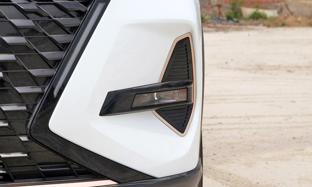 Открытый выхлоп, разнесенные две трубы с левой и правой стороны с прямоугольной накладкой в бампере